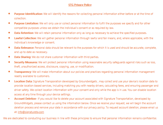 Prompt, courteous, and extremely professional. The Signature Transportation mobile app is great being able to see the driver’s exact location along with other pertinent information about the reservation.